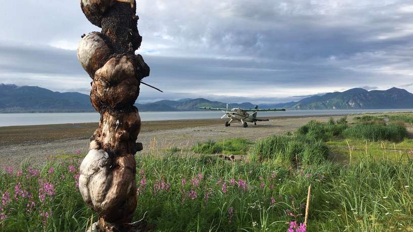 Een aantal weken later stapte ik in City of Kenai in een bushplane naar Lake Clark National Park. Hier ga ik twee nachten in de Bear Mountain Lodge overnachten. De vlucht vanuit Kenai naar Lake Clark is op zijn zachtst gezegd spectaculair. In de verte zie ik de Redoubt vulkaan en niet veel later vliegen we over de flanken van Mount Iliamna. Ongeveer drie kwartier na take off landt de piloot het kleine vliegtuigje behendig op het strand van het nationale park. De eigenaresse van de Bear Mountain Lodge, Marty, heet me van harte welkom. Hallo wildernis!