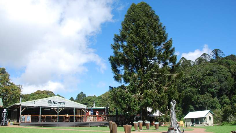 De weg er naar toe slingert door weilanden met hier en daar een typische windmolen en hoe dichterbij ik kom hoe smaller de weg wordt met bomen langs de weg die een boog over me heen vormen. In de centrale vallei liggen diverse vakantiehuisjes verspreid over een groot, groen grastapijt. Geen grasmaaier nodig hier, want de tientallen wallaby’s en kangoeroes grazen het kort. Ik kan uren kijken hoe deze bijzondere dieren rond huppen, sommigen met een jong in hun buidel. Eerst steekt het jong zijn kop naar buiten, trekt zich vervolgens terug waarbij de buik van de moeder als een wasmachine ronddraait om vervolgens alleen nog een staart naar buiten te steken. Heel grappig. Het grasveld wordt omringd door de Bunya Pine, een dennenboom met de vorm van een dennenappel, waar ook de regio naar vernoemd is. Er zijn verschillende wandelingen te maken naar mooie uitzichtpunten die leiden langs watervalletjes, die eerlijk gezegd die naam niet mogen hebben. Maar de routes zijn prachtig. Over een bladerpad loop je tussen reuzen van bomen met de meest gekke stammen en af en toe schiet er een wallaby de struiken in. Deze plek ademt serene rust uit! Ik zou hier zeker naar terugkeren.