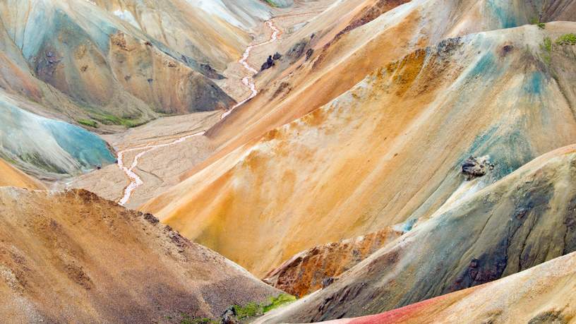 In het zuiden zijn er twee routes om naar de prachtige gekleurde bergen van Landmannalaugar te rijden. Ook hier heb je dus een 4WD voor nodig. Je kunt vanaf de westkant rijden, waarbij je alleen een rivierdoorsteek hebt, vlak vóór de camping van Landmannalaugar. Dit is een prima plek om een rivierdoorsteek uit te proberen, want je hebt hulp bij de hand; maar je hebt ook publiek…. Of je parkeert de auto voor de rivier en wandelt het gebied in. De route vanaf de oostkant naar Landmannalaugar is veel uitdagender met flinke rivierdoorsteken. Je komt dan ook langs de vuurkloof Eldgjá.
