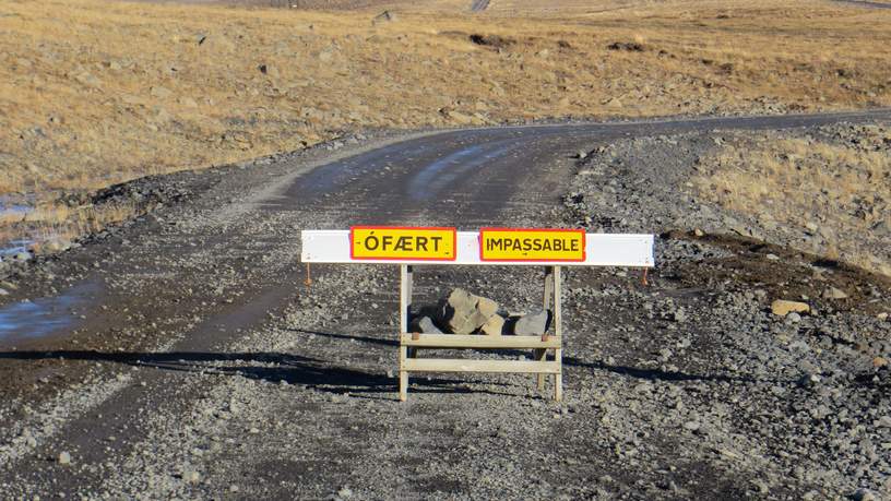 De IJslandse road administration houdt de toestand in de gaten. Meestal tussen half juni en begin juli, wordt er een bulldozer op weg gestuurd om de route te egaliseren. Als dat is geslaagd, dan wordt de betreffende route geopend. Nu weet je gelijk waarom er nooit van te voren een vaste datum gegeven wordt voor de opening van de binnenlandroutes. In 2015 was het extreem laat, pas begin juli. In 2016 is het ‘normaal’. De Kjölur is al even open en sinds 30 juni ook de Sprengisandur. Ergens in september worden de borden ‘ofaert - impassable’ weer geplaatst, als ophopingen van de eerste sneeuw een gevaar gaan vormen om met je auto in te stranden.