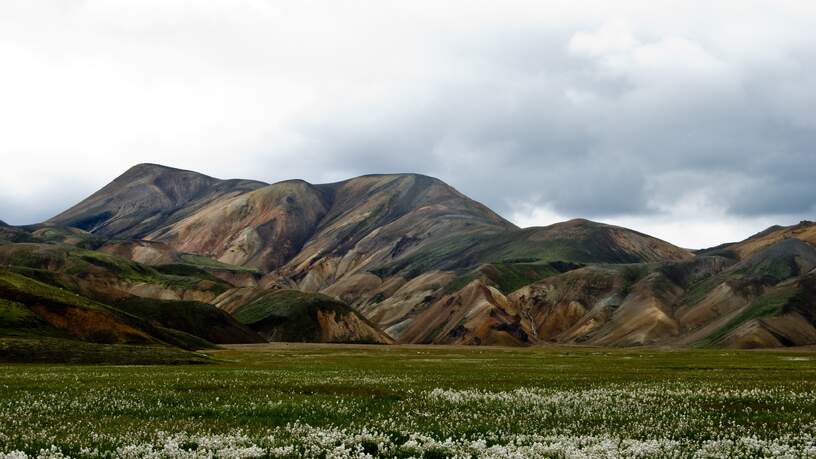 Landmannalaugar is ook de plek waar de Laugavegur trail begint, een wandeling van het binnenland richting de kust. In een paar dagen, met overnachtingen in of bij de verschillende hutten, loop je van het rhyoliet gebergte naar het eindpunt bij Skógafoss. Maar ook het eerste stukje van de route, van de camping naar de hete bronnen en weer terug is ook al de moeite waard! De wonderlijke kleuren van de bergen, het wollegras dat in een dalletje verderop groeit, hier en daar nog was ijs van de afgelopen winter en de stoom die uit de hete bronnen komt. Allemaal in een wandeling van een paar uur. Een belevenis die je in geuren en kleuren bij blijft. Ik kan niet wachten om deze mooie plek weer te mogen bezoeken, ga je mee?