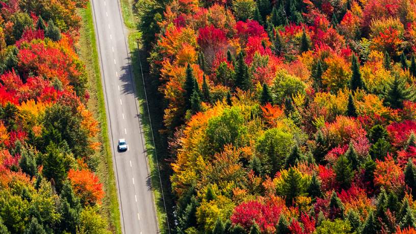 Één van de mooiste plekken in Ontario om te genieten van de bont gekleurde natuur is het Algonquin Park, dat ligt op slechts 3 uur rijden ten noorden van Toronto. Hier vind je maar liefst 24 soorten bomen die verkleuren in de herfst. Omdat het park hoger ligt dan haar omgeving, op ca. 600 meter boven zeeniveau, zal de beroemde Indian Summer hier al vroeg in het herfstseizoen haar intrede doen, zelfs enkele weken eerder dan in bijvoorbeeld de steden Ottawa en Toronto! Geen enkele boom groeit zomaar zonder reden op een bepaalde plek in het park. In gevecht tegen de elementen zoeken ze de beste plek om in de zon te kunnen staan. Iedere soort heeft weer andere kwaliteiten die in verschillende condities het beste tot hun recht komen en zo komen ze tot de mooiste kleuren. Om die reden is het schitterende mozaïek van kleuren hier beslist geen toeval, maar wordt het bepaald door de bodem, vochtigheid en klimaat. Het resultaat is een verbluffende combinatie van kleuren groen, geel, oranje, rood en paars.