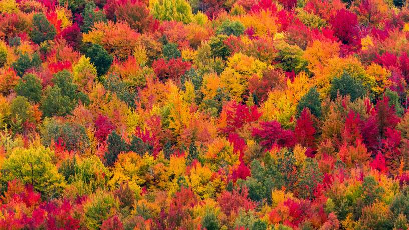Karmijnrode esdoorns en stralende berken en eiken in zand- of krachtige gele tinten; soms zijn de kleuren zó schitterend dat je mond er letterlijk van openvalt. Het fenomeen treedt op na de eerste stevige nachtvorst in het najaar. Door de nachtvorst stoppen de bomen met het produceren van chlorophyll, het stofje dat de bladeren groen maakt. Met het verdwijnen van de chlorophyll krijgt de boom een seintje dat de voedseltoevoer naar de bladeren gestopt kan worden. Vervolgens verkleuren de bomen in de mooiste tinten.