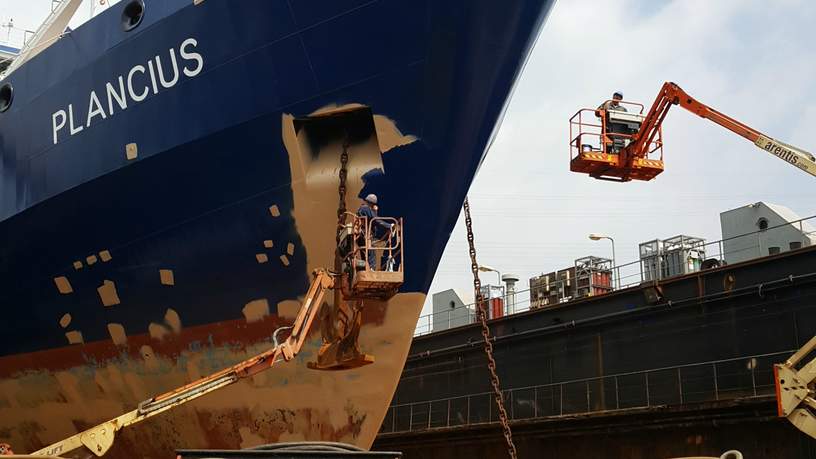 Onze volgende trip ging naar Hansweert in Zeeland, waar twee schepen van Oceanwide Expeditions net aangekomen waren vanuit Antarctica.