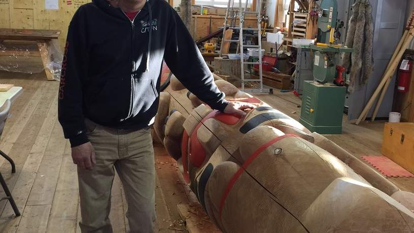 Voor we zelf onze eigen driedaagse Yukon Quest beginnen stoppen we in Carcross. Hier bevindt zich de werkplaats van Keith Wolfe, totempalen carver, trapper en verhalenverteller. Ik ben in mijn element, want de werkplaats van Keith ligt vol met gereedschap, houtkrullen, machines en een enorme totempaal. Zijn veertiende exemplaar en aangezien Keith dit werk al ruim dertig jaar doet snap je dat je er even zoet mee bent, zo'n totempaal. Hij praat honderduit over zijn werk en zijn voorvaderen. Hij zegt dat iedereen denkt dat zijn achternaam Wolfe een verwijzing naar zijn mystieke Indiaanse roots is. In werkelijkheid heeft hij een Duitse overgrootvader die Wolfgang heette..