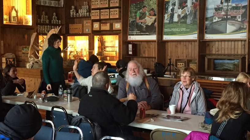 Terug in Dawson City staat een lokale specialiteit op het programma: de sourtoe cocktail. Dit is een stevige borrel met een geconserveerde teen erin. Er is maar 1 regel: 'You can drink it fast, you can drink it slow, but the lips gotta touch the toe'. Volgens het verhaal is de huidige teen gedoneerd door ene Betsy, die met een grasmaaier over haar voet heenreed. Hoe dan ook, Frits ging voor de borrel. Kijk vooral even op de Facebook pagina van Frits voor het filmpje en de hilarische beschrijving. Als ik naar buiten loopt spreekt een Aussie met duidelijk een paar borrels teveel op mij aan. Of ik die beroemde TV chef ben? Well.. zeg ik voorzichtig. Je bent ’t hè, zegt de man. OK, zeg ik, niet doorvertellen! Samen met z'n maten moet ik op de foto, met een mes en vork in de hand. Hoe die TV show eigenlijk heet, vraagt een van hen. Nu moet ik snel zijn. "Cooking in the Wild" zeg ik. Right mate! zegt hij, That's it! Cooking in the Wild! Leuke stadje, Dawson.