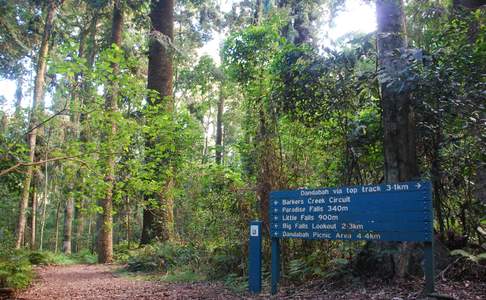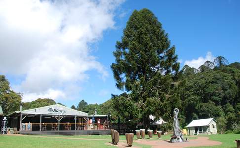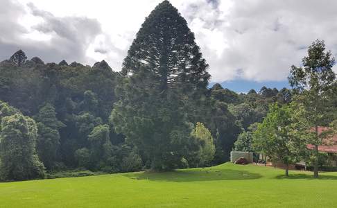 - • Regenwoud en eucalyptusbomen in Bunya Mountains