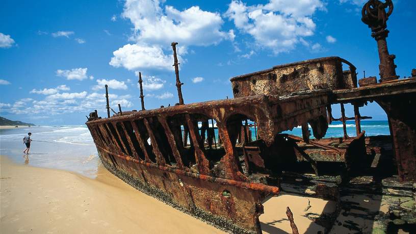 Een bezoek aan het grootste zandeiland ter wereld, Fraser Island, mag zeker niet ontbreken. Je kunt kiezen voor een dagexcursie met een gids. Je maakt met een 4WD bus een tour over het strand en de duinwegen. Je ontdekt bijzondere natuurgebieden met dichte bossen, regenwoud, zandduinen en gekleurde meertjes. En op het strand stop je uiteraard bij het Maheno Wreck. Een andere gave optie is om te vliegen naar Fraser Island en daar zelf een dag met een 4WD auto rond te rijden, waarna je weer wordt opgehaald.