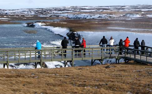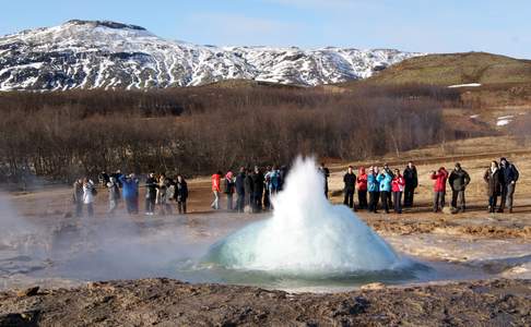 Dag 4 - Gouden cirkel: Thingvellir, Geysir en Gullfoss: Vandaag maak je kennis met iets heel IJslands: het IJslandse paard. Dit kleine sterke ras is door de Vikingen ooit naar IJsland gebracht. Je krijgt uitleg over het belang van dit paard voor de bevolking, vroeger en nu. De volgende stop is bij Geysir. Hier zie je de vulkanisch activiteit bij de borrelende bronnen maar ook de spuitende geiser, Strokkur. Deze spuit gemiddeld om de acht minuten. Het is de kunst op het goede moment een foto te nemen. Vlakbij ligt de Gullfoss, de gouden waterval die in twee trappen naar beneden valt. Dit is de bekendste van IJsland. Op weg naar Reykjavík brengen we een bezoek aan Nationaal Park Thingvellir. Dit park is geologisch en historisch erg interessant. Hier is de breuklijn tussen het Europese en Amerikaanse continent zichtbaar. Ten slotte word je naar je accommodatie gebracht en neem je afscheid van de reisleiding. Wie wil kan nog een noorderlichtcruise boeken om nog een keer te speuren naar de Aurora Borealis.