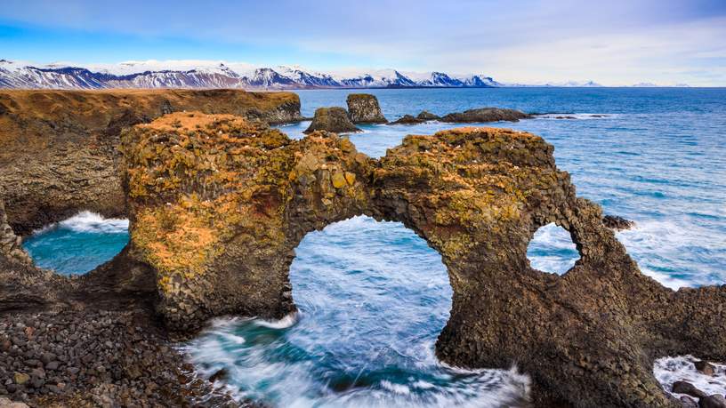 Je hebt de hele dag de tijd om het schiereiland Snæfellsnes te bezichtigen. Langs de grillige kustlijn liggen veel vissersplaatsjes. Tussen twee van die kustdorpjes kun je een prachtige wandeling maken: van Hellnar loop je naar Arnastapi, waarbij een klein pad langs de basaltrotsen voert. In circa 2 tot 3 uur loop je heen en terug. Geniet van de gletsjer Snaefellsjökull, stop bij Ytri Tunga om te kijken of je er de zeehonden kunt vinden die hier vaak liggen en neem zeker een kijkje bij het fotogenieke kerkje en kleurige lavastrand van Budir. Vanuit Stykkishólmur aan de noordkant wordt een natuur- en vogelboottocht georganiseerd.