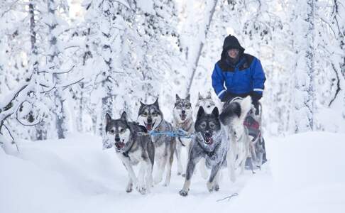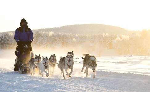 - Huskysafari (15-25 km, ca. 4 uur): Na het ontbijt word je naar de huskyfarm gebracht, waar je de sledehonden ontmoet. Na informatie over de honden en instructies betreffende het besturen van een slede, maken we met twee personen per slede een schitterende tocht van 15-25 km door het prachtige bosrijke en heuvelachtige landschap. Eén persoon is de musher en staat achterop de slede en de andere persoon zit in de slede. Onderweg kunnen de musher en de passagier van plaats wisselen.