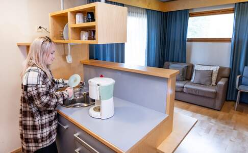 Op circa 300 meter afstand van het hotel (via steile helling) liggen moderne vakantiewoningen. Deze zijn voorzien van een kleine keuken, was- en droogfaciliteiten, een badkamer, een eigen sauna en een houtkachel. Het zijn geen vrijstaande huisjes, maar appartementen van verschillende grootte verdeeld over enkele huizen. Het geheel is niet grootschalig en geeft toch een gevoel van ruimte en privégebruik. Indien je verblijft in de huisjes gebruik je de maaltijden in het hotel en mag je ook gebruik maken van de faciliteiten van het hotel.