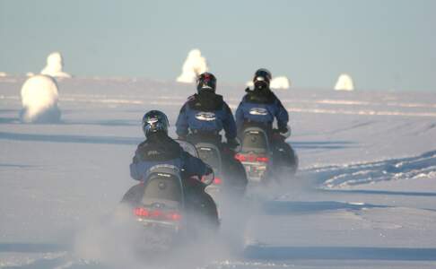 - Sneeuwscootertocht (20-40-km, ca. 3-4 uur): Je krijgt instructie voor het besturen van de sneeuwscooter en maakt dan met twee personen per scooter een rit van 20-40 km. Een geweldige tocht met een lunch bij het kampvuur waar we worstjes boven het kampvuur kunnen roosteren. Onderweg wordt er regelmatig gestopt zodat bestuurder en bijrijder van plaats kunnen wisselen. Als je weer terug bent in het hotel is de sauna warm gestookt. Dit zal elke dag het geval zijn.