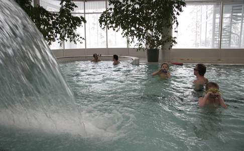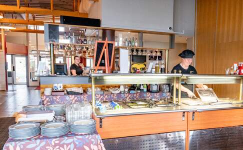 In het restaurant met open haard en gezellig zitje wordt elke avond de maaltijd geserveerd of er staat een buffet voor je klaar. Daarnaast is er de hele dag gratis thee, koffie en water te verkrijgen in het restaurant. In de lobby is een kleine bar, waar je een drankje kunt bestellen. Toegang tot het zwembad en de sauna's is inclusief je verblijf. Ook is er de mogelijkheid om tegen betaling een sauna en jacuzzi privé af te huren (kosten bij 2 personen € 60,- voor 2 uur en bij 3-7 personen € 100,- voor 2 uur). Wifi is beschikbaar in de lobby en in de hotelkamers (gratis). In de huisjes is geen wifi. Het hotel heeft 30 eenvoudige tweepersoonskamers, die voorzien zijn van een douche en toilet, tv, slaapbank, telefoon en droogkast. Enkele kamers hebben een klein keukenblok.