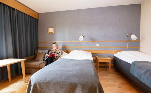 AccommodatieHet voormalige handelsdorp Taivalkoski ligt in midden Finland in de provincie Ostrabotnia, aan de poort naar Lapland. Je verblijft aan de rand van het dorp Taivalkoski, naar keuze in hotel Herkko of een vakantiewoning bij hotel Herkko. In Taivalkoski zijn twee kleine supermarktjes. Vanuit het hotel is het ongeveer 20 minuten lopen. Het hotel ligt vlak bij een klein alpineskicentrum en een netwerk aan langlaufloipes en sneeuwscootersporen. Vanaf de voordeur kun je direct de natuur in voor een actieve dag.