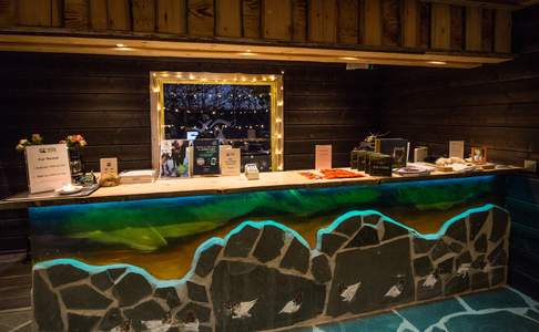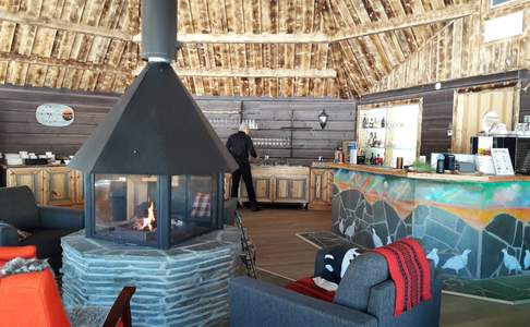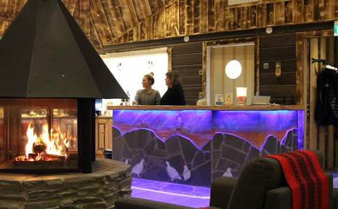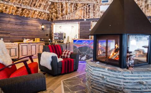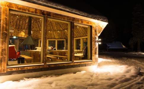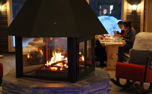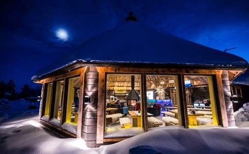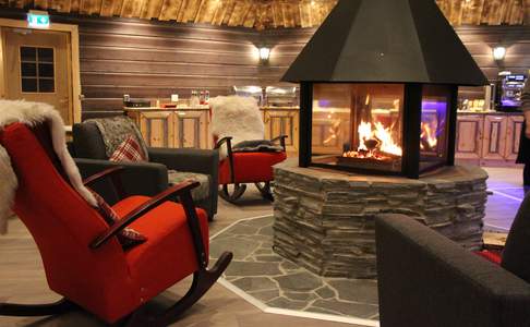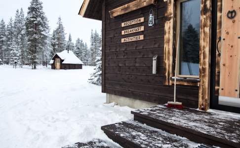 In het hoofdgebouw vind je de receptie, de bar en het gezellige restaurant. Het restaurant is gebouwd in de vorm van een Finse kota, met in het midden een open haard. Rondom de open haard staan comfortabele stoelen en aan de picknick tafels geniet je van de maaltijden. Sneeuwschoenen, langlaufski's en sledes zijn gratis te gebruiken tijdens je verblijf.