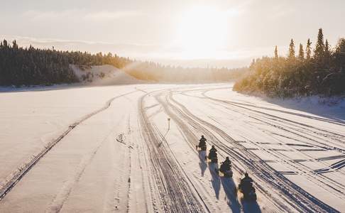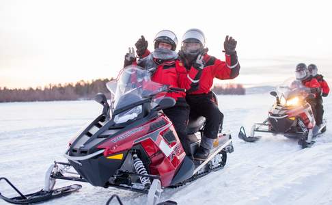 - Sneeuwscootertocht (20-40 km ca. 2 uur): Na instructie van de gids worden de sneeuwscooters gestart en ga je op weg door de besneeuwde bossen. Met wat behendigheid slinger je tussen de besneeuwde bomen door. Vergeet niet van het landschap te genieten onderweg. Op de bevroren meren of rivieren mag je wat meer snelheid gaan maken. Onderweg wordt er regelmatig gestopt zodat je kan wisselen. Een geweldige ervaring die je niet snel zal vergeten!