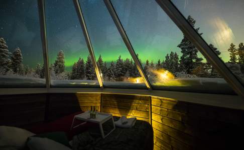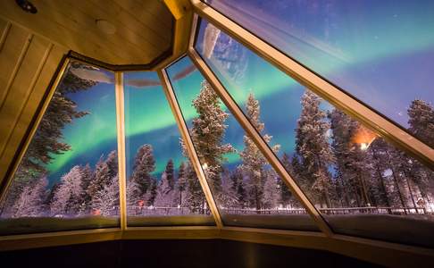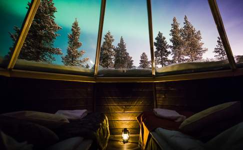 AccommodatieAurora village ligt op 12 kilometer van de luchthaven en de transfer is slechts 15 minuten, perfect dus voor een shortbreak. Toch verblijf je midden in de wildernis, want het Aurora Village ligt buiten Ivalo op een prachtige plek in de wildernis en aan een bevroren meer. De 25 aurora cabins liggen rondom een rendierweide en er lopen zelfs een paar rendieren los op het terrein. De Finse houten kota's hebben een glazen dak. Hier speur je vanuit je bed de sterrenhemel af, op zoek naar het noorderlicht. Wil je niets aan het toeval overlaten? Meld je dan aan voor het aurora alert. Voor gasten van Askja reizen is deze service gratis.