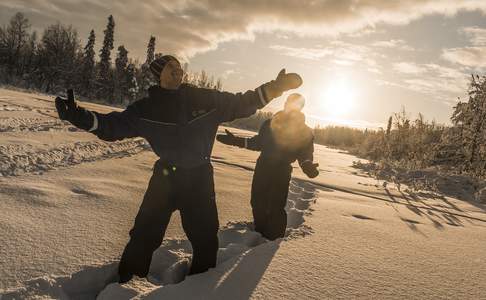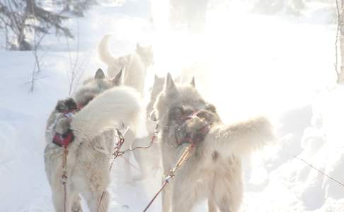 - Huskysafari (4 uur, 15-20 km): Vandaag ga je een bijzondere dag beleven, want je gaat een huskysafari maken. Eerst ontvang je de speciale thermokleding en daarna een korte transfer naar de huskyfarm. Hier maak je kennis met de vriendelijke husky's. Nadat je uitleg hebt gehad, ga je op pad. Bij de start blaffen de honden vol enthousiasme en dan stuiven ze weg, maar al snel horen we alleen nog hun gehijg en het gekraak van de sneeuw onder hun poten. Voor de rest heerst er een overweldigende stilte. Eén persoon is de musher en staat achterop de slede en de andere persoon zit in de slede. Je maakt een lunch stop midden in de wildernis en na de lunch kunnen de musher en de passagier eventueel van van plaats wisselen.