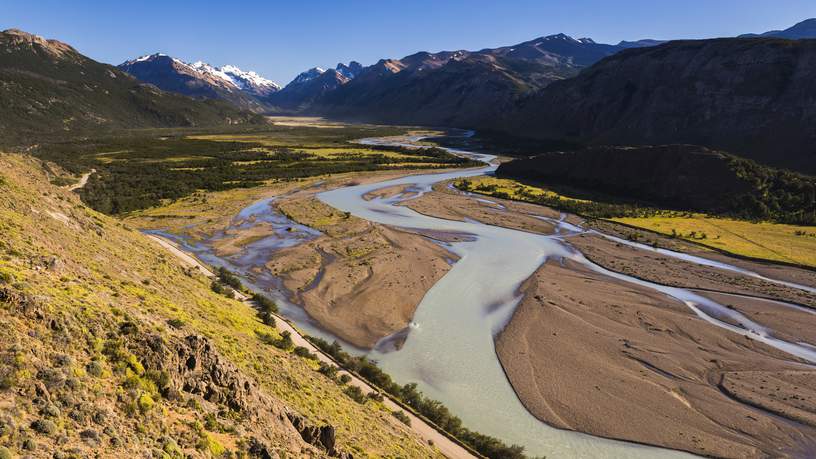 Vanmorgen word je bij het hotel opgehaald en per bustransfer naar het kleine bergdorp El Chaltén gebracht, de uitvalsbasis voor het noordelijk deel van Los Glaciares. Het dorp is gesticht in oktober 1985, waarmee het één van de jongste dorpen van Argentinië is, en heeft zich inmiddels ontwikkeld tot dé plek voor wandelaars. Je passeert achtereenvolgens de immense meren Lago Argentino en Lago Viedma, stop voor een kop koffie bij Estancia Leona. Bij helder weer kun je de Cerro Torre (3.128 meter) en Cerro Fitz Roy (3.775 meter) in de verte al zien liggen.